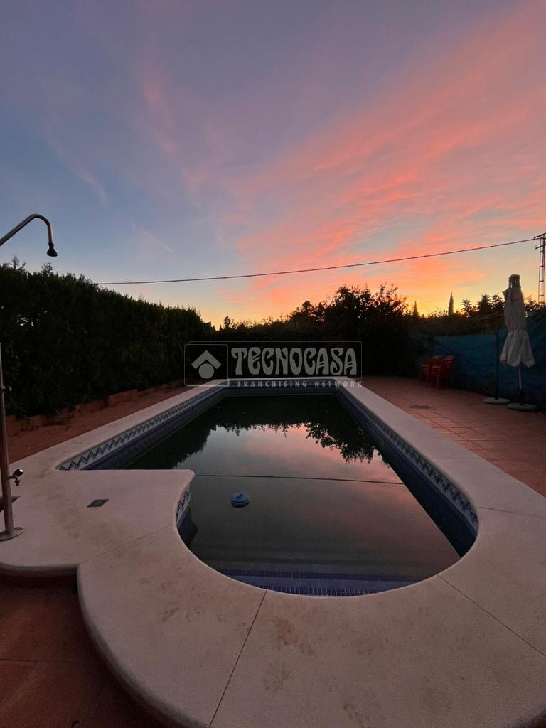 Las zonas exteriores rodean toda la vivienda y están formadas por jardines con diferentes especies vegetales, especialmente concentradas en la zona de acceso. La parcela dispone de una piscina situada en uno de los laterales, separada por vegetación aportando privacidad. Junto a esta área, un árbol de gran porte genera una zona de sombra natural adecuada para reuniones o espacio de descanso.