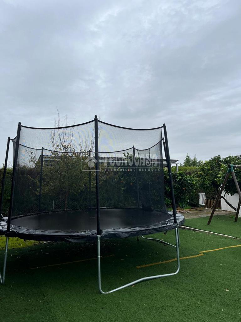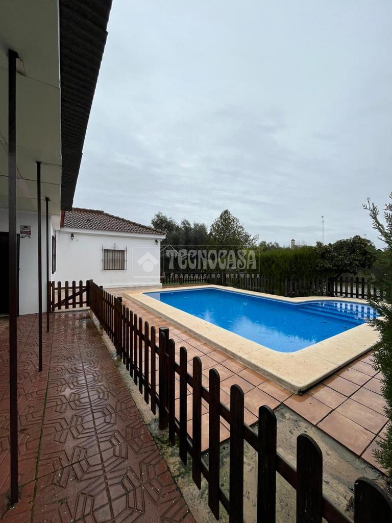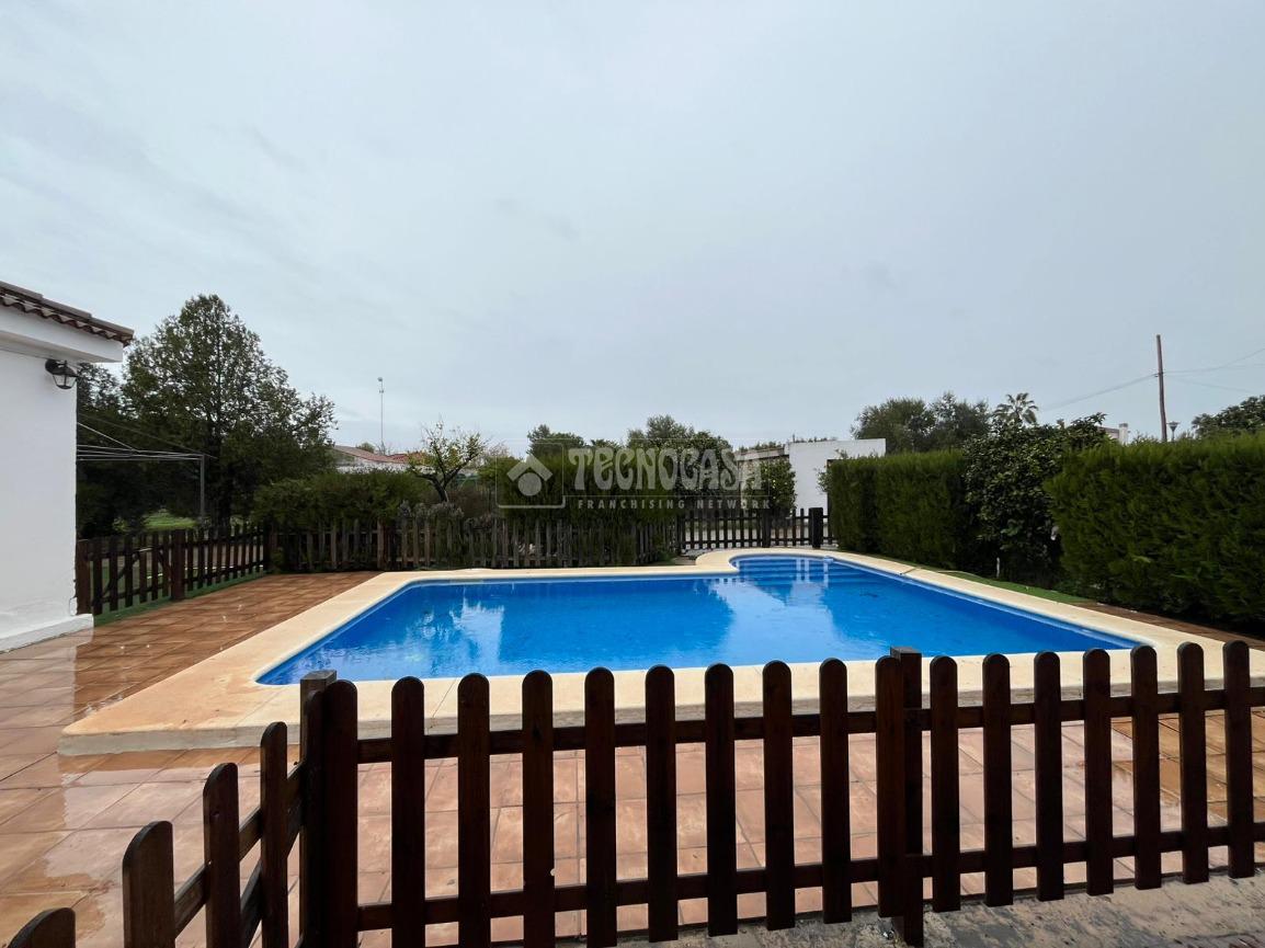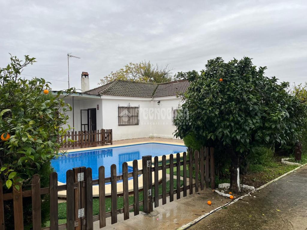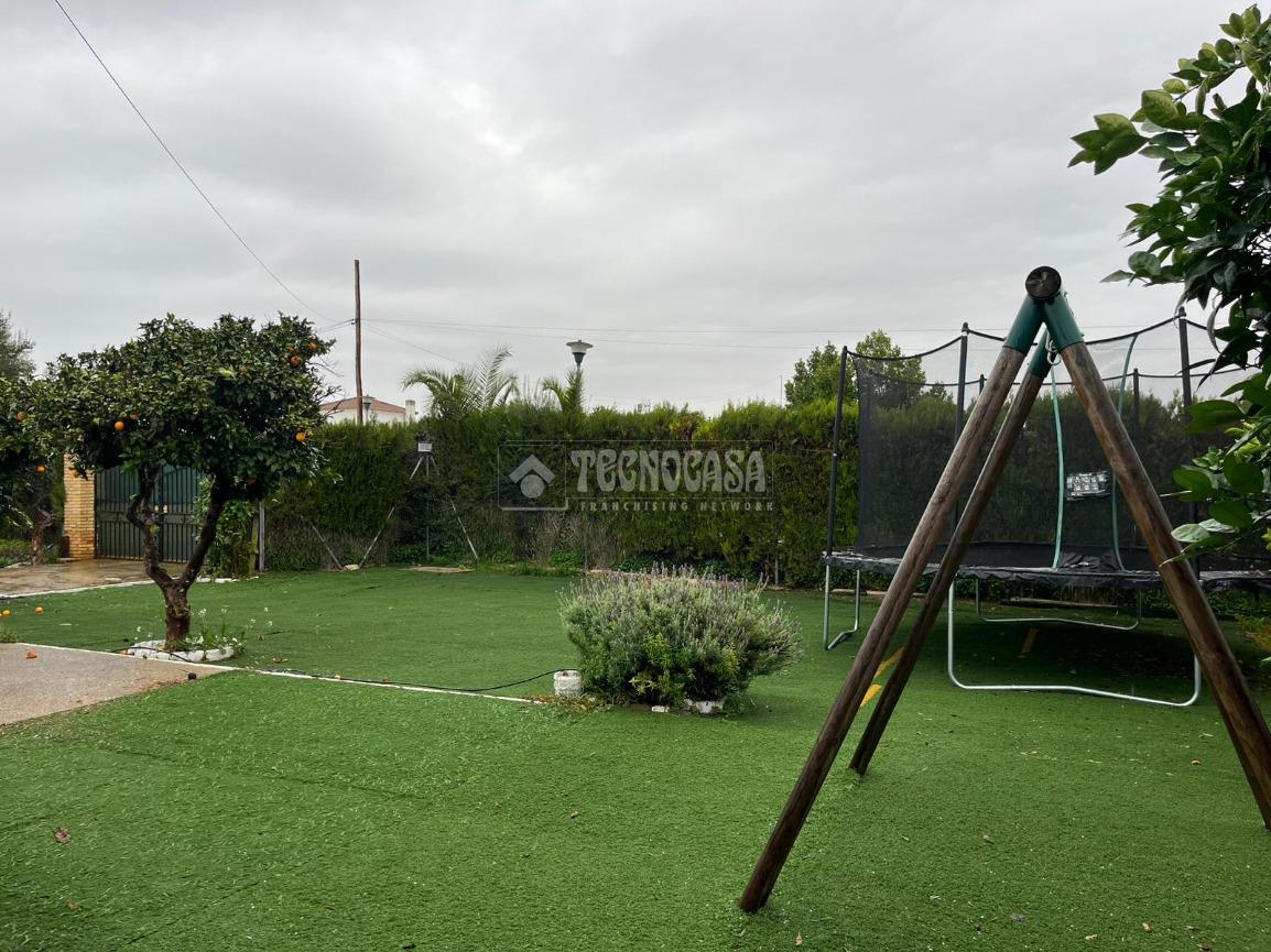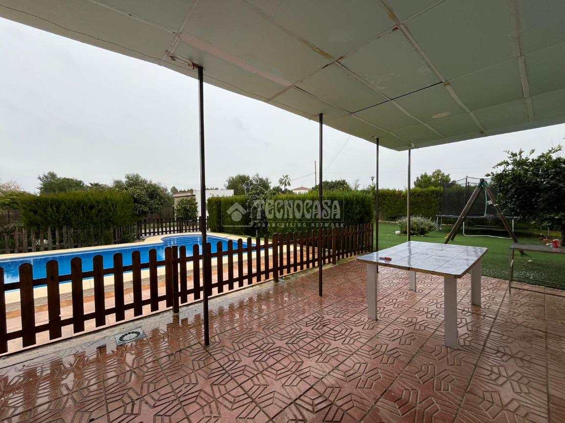 En el exterior destaca su piscina junto al porche, un espacio perfecto para disfrutar de las tardes de verano a la sombra. La parcela cuenta además con zona de ocio con naranjos y vegetación decorativa, creando un entorno natural y relajante.